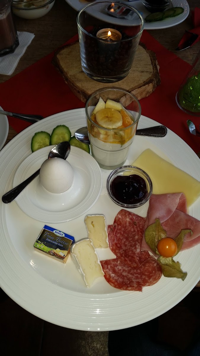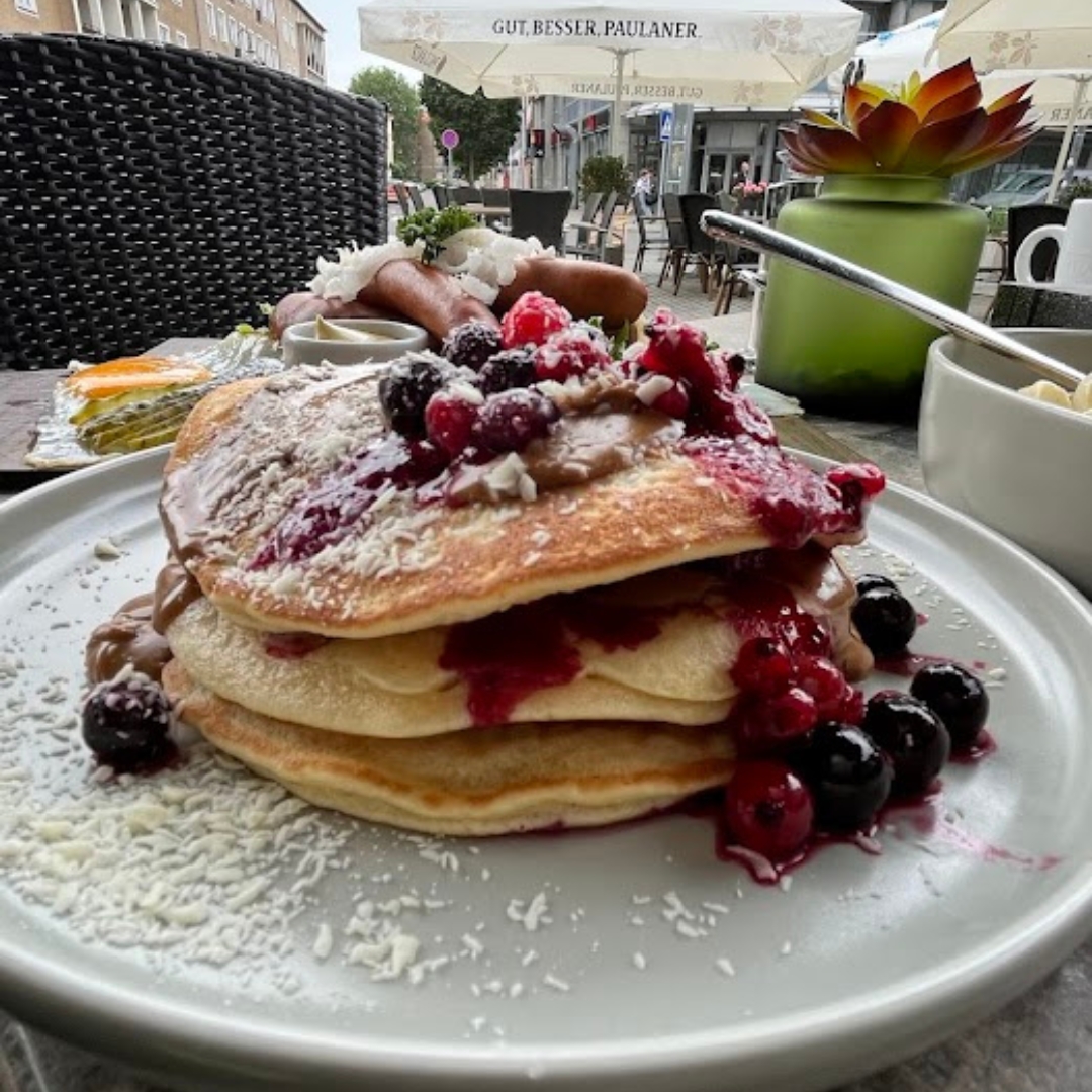 The cafe is best known for its breakfast options, ranging from classics like Eggs Benedict and freshly baked croissants to seasonal fruit-topped pancakes and a variety of home-style cakes such as Apfelkuchen mit Streusel and Pfirsich Schmand Torte. The menu balances sweet and savory with equal care, making it a comfortable place for anyone from a solo morning coffee drinker to families gathering on weekend mornings.